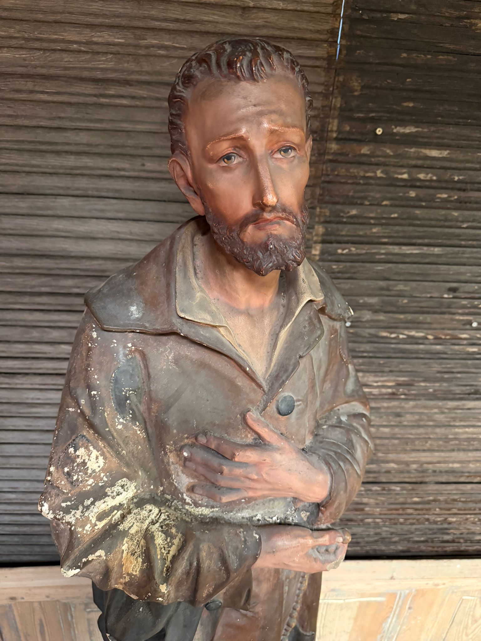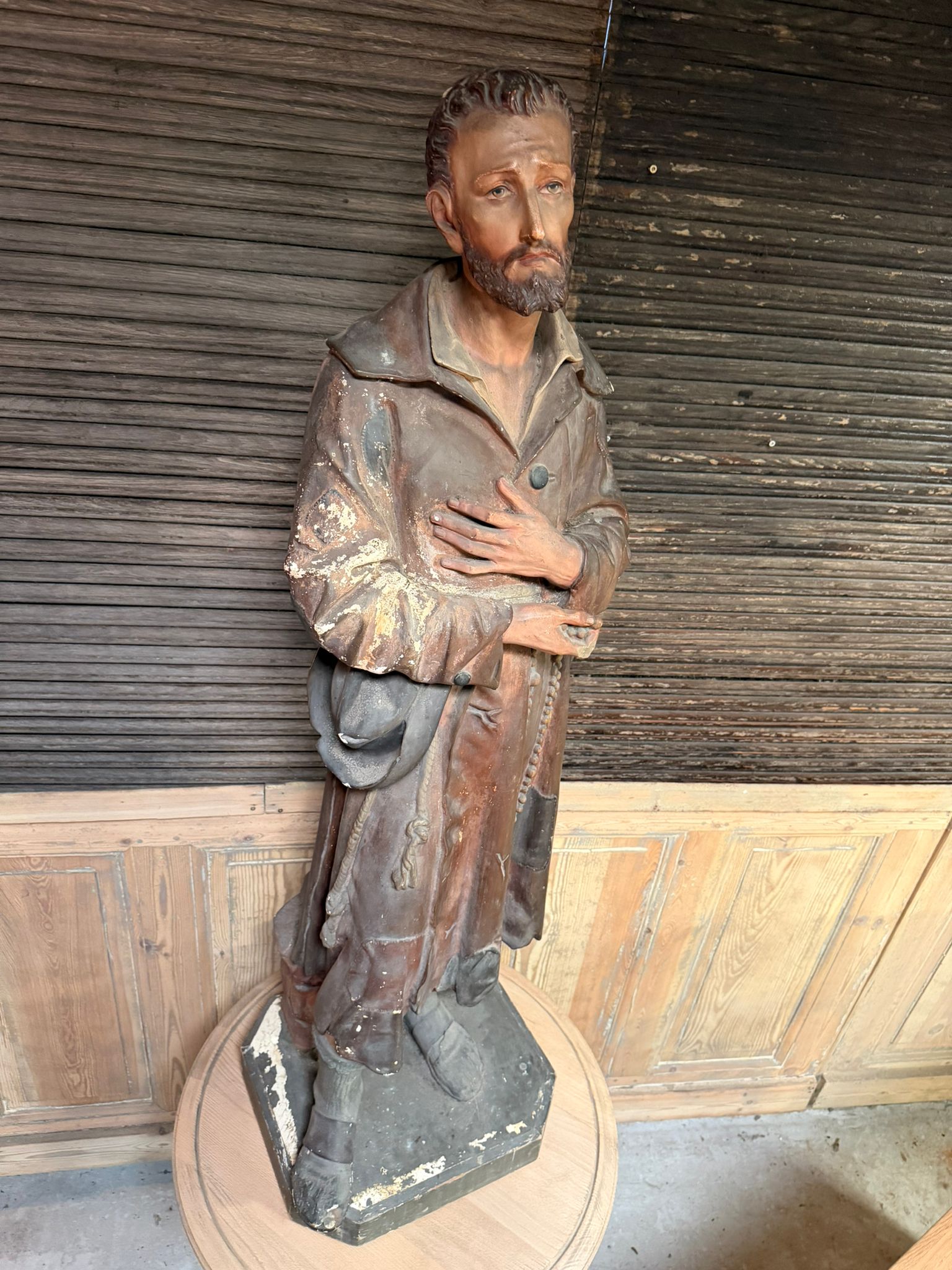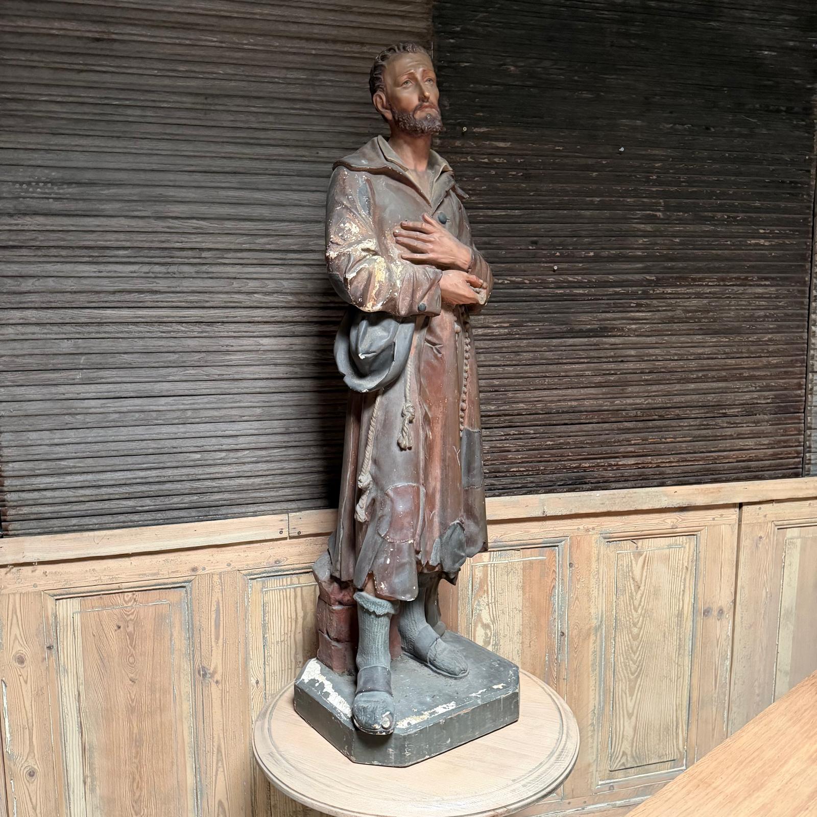 Magnifique ancienne statue religieuse datant de la fin du 19eme/ début du 20 eme siècle représentant St Benoit-Joseph Labre.