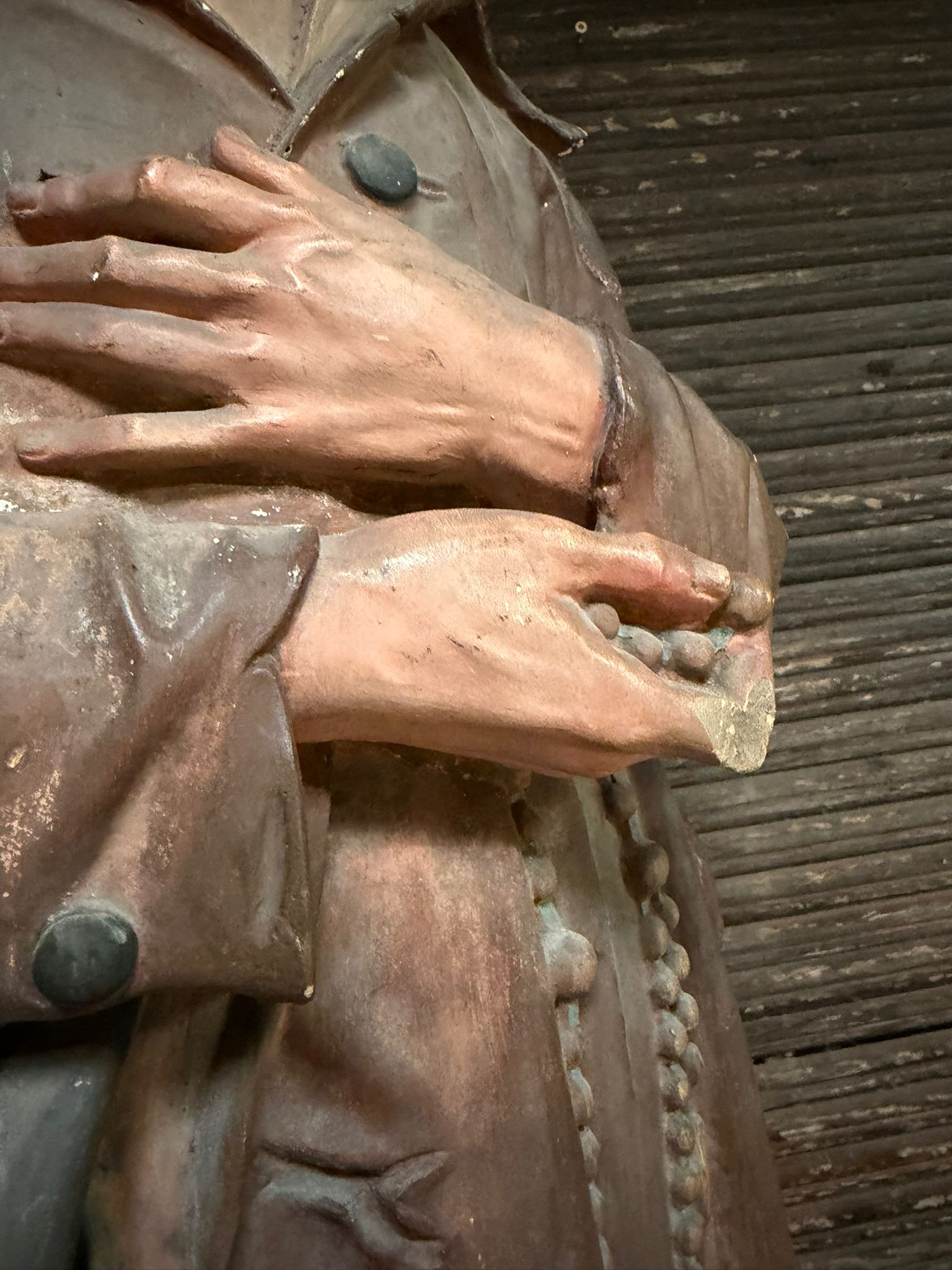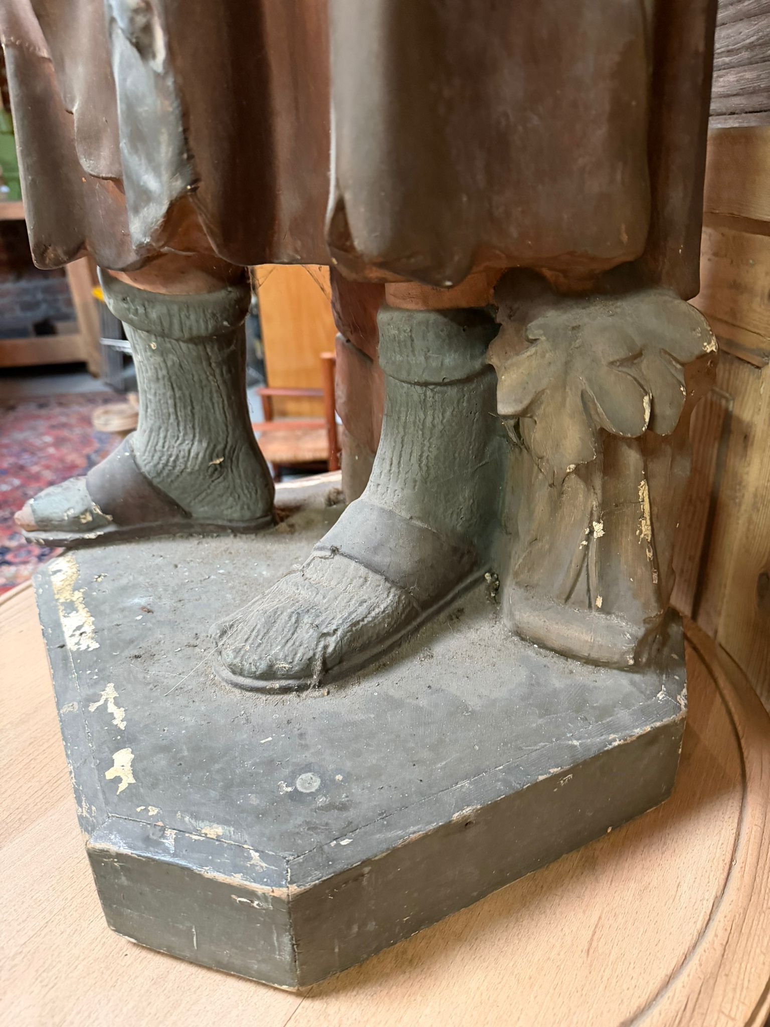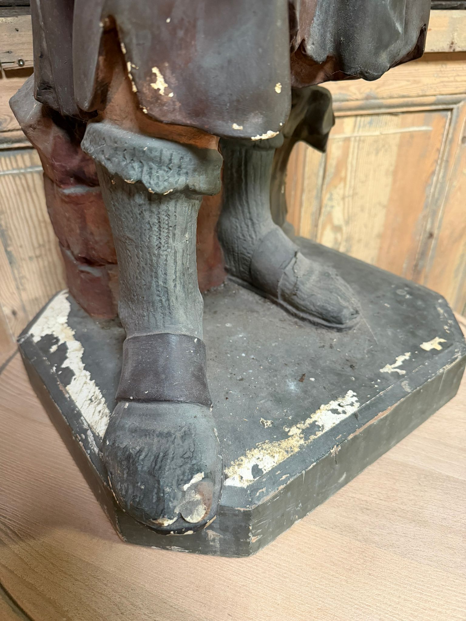 Statue en bois sculpté recouvert de platre polychrome.