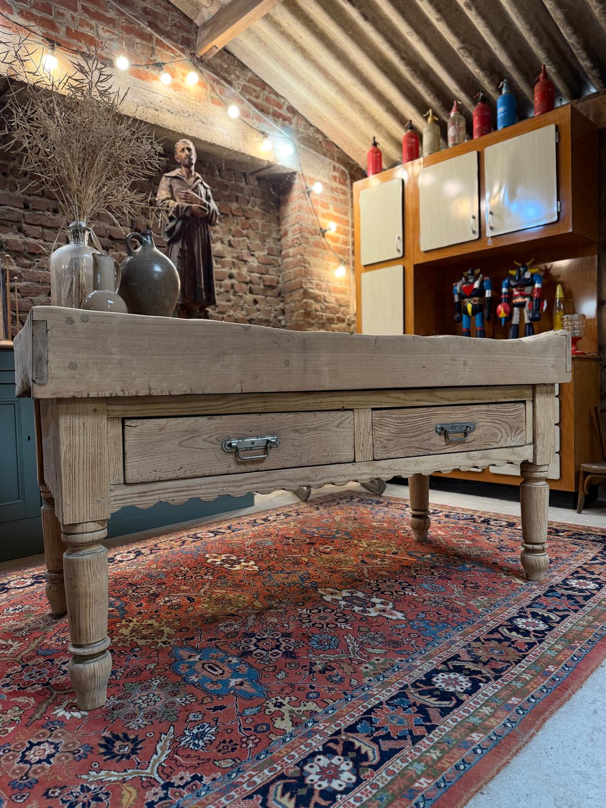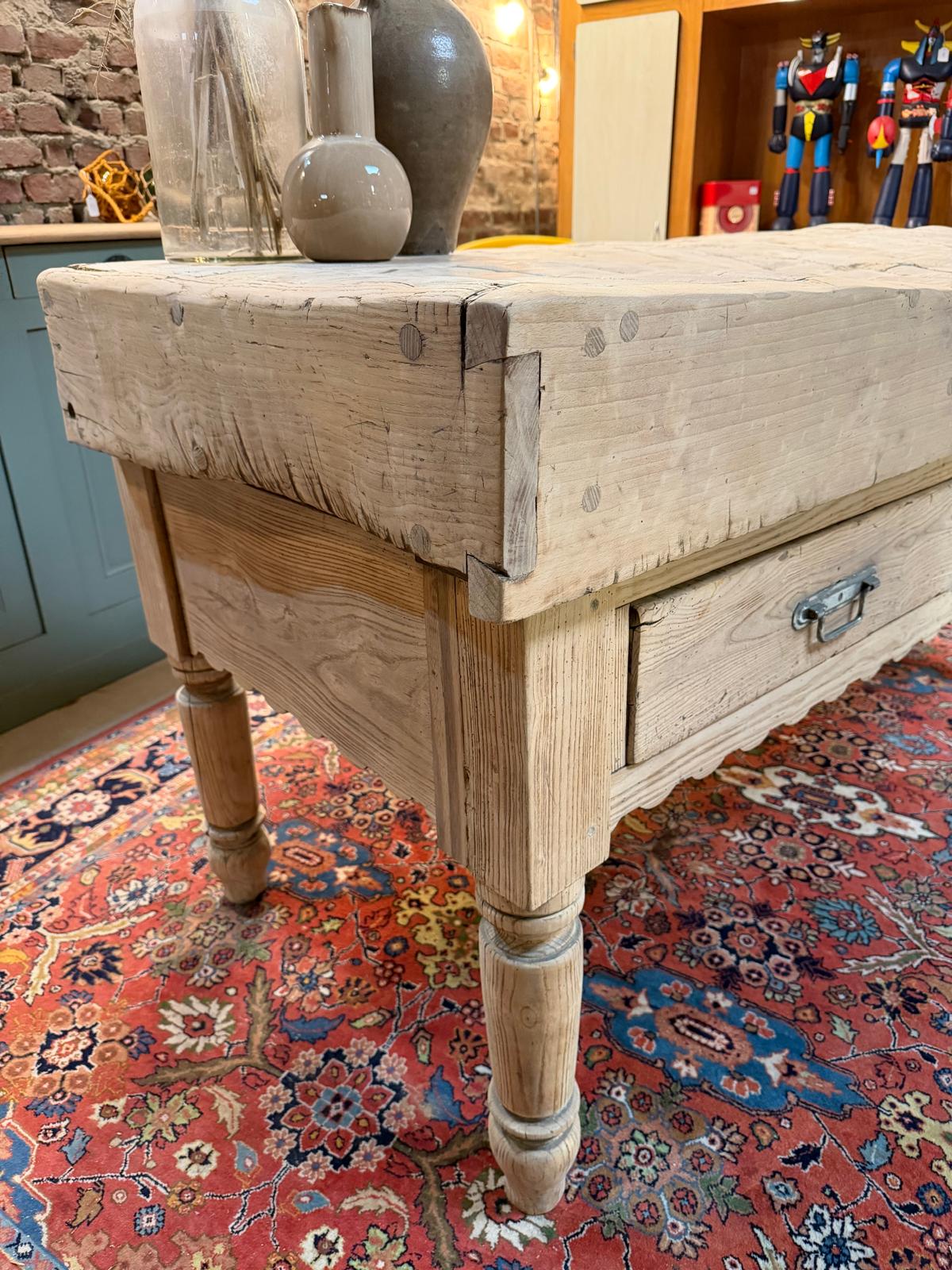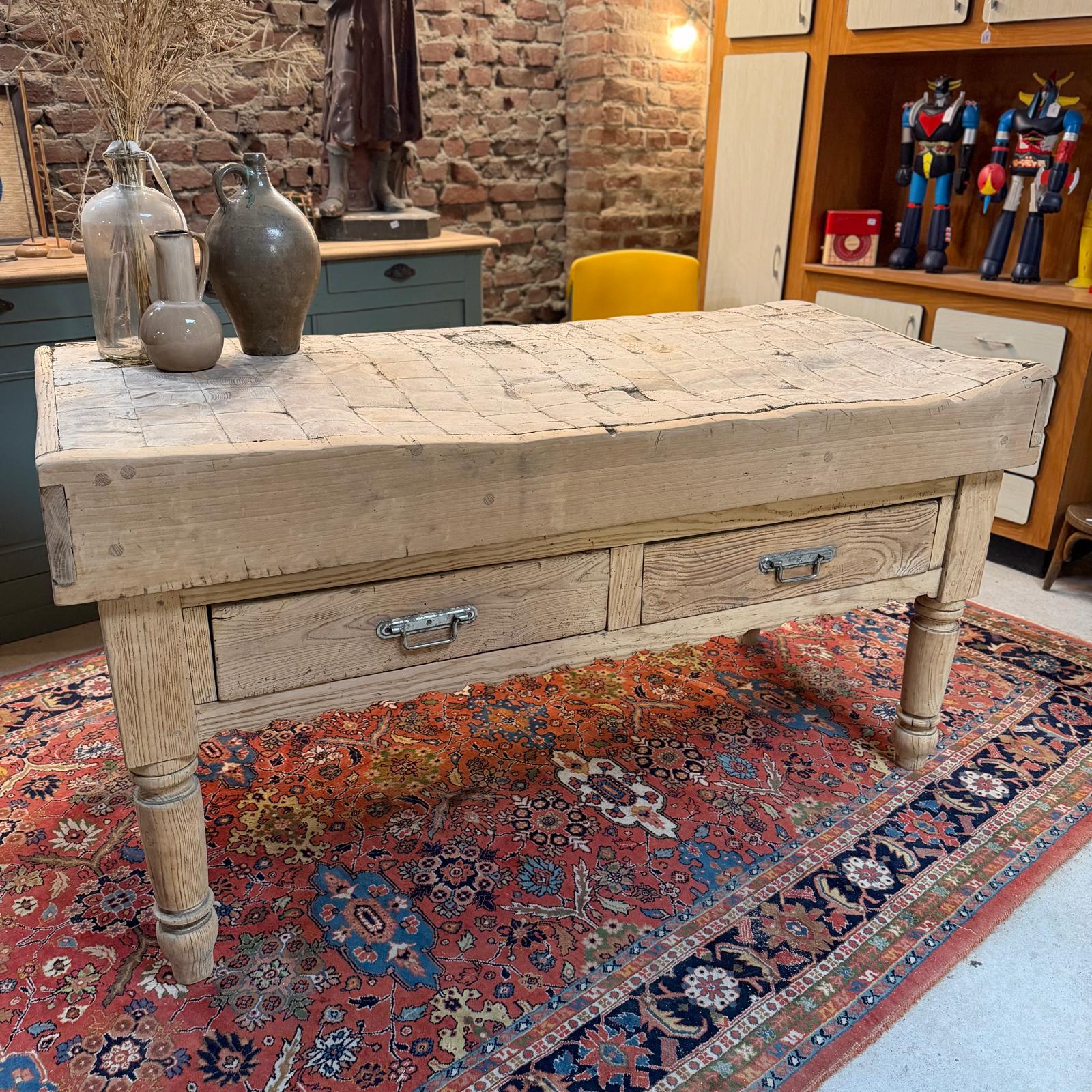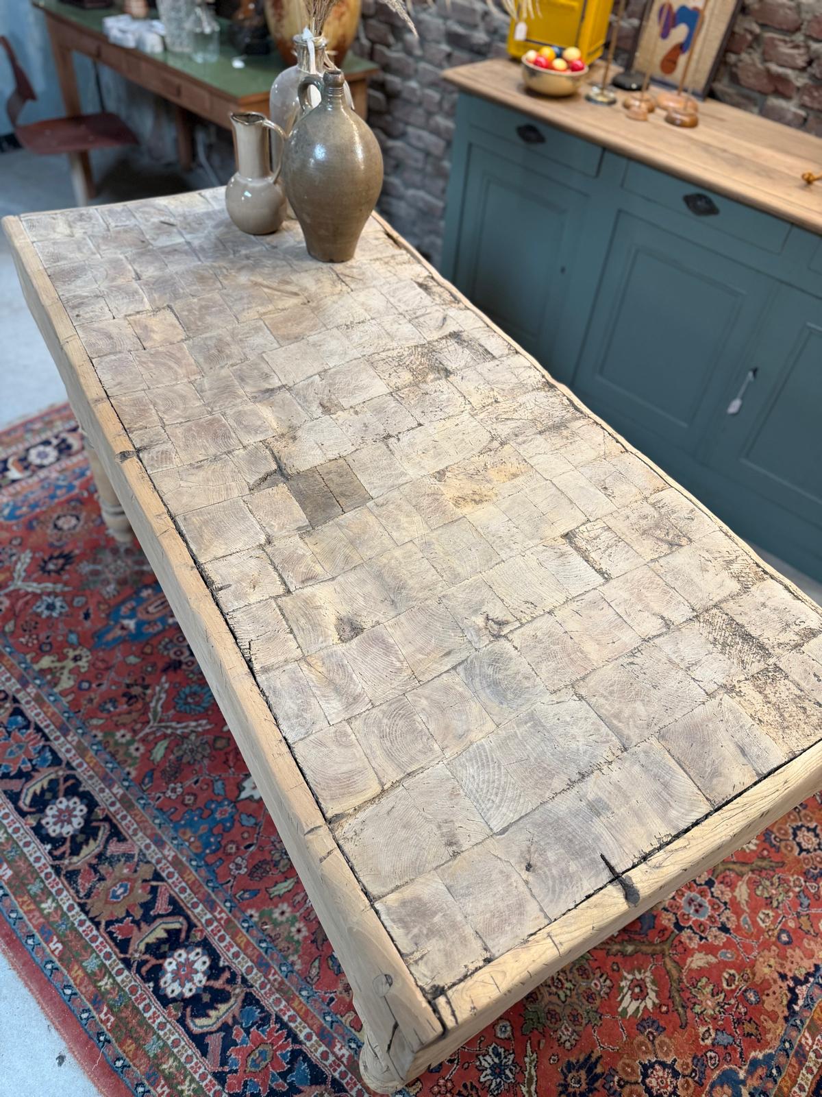 Ancien billot de boucher en chêne massif du début du XXème siècle.