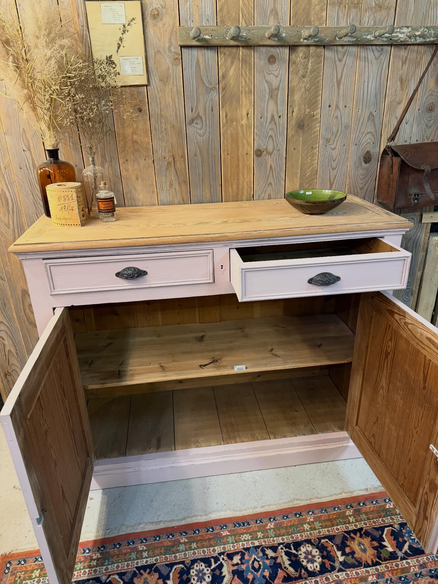 Très joli buffet parisien des années 60 avec sa patine rose poudré.