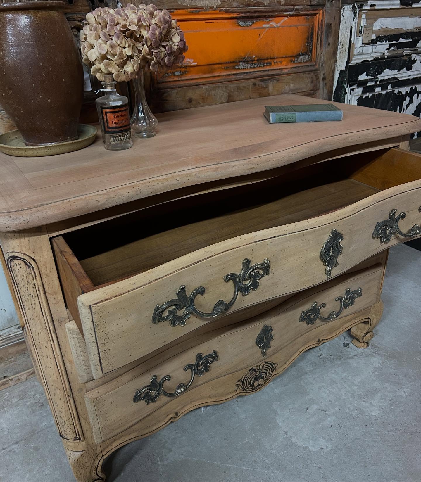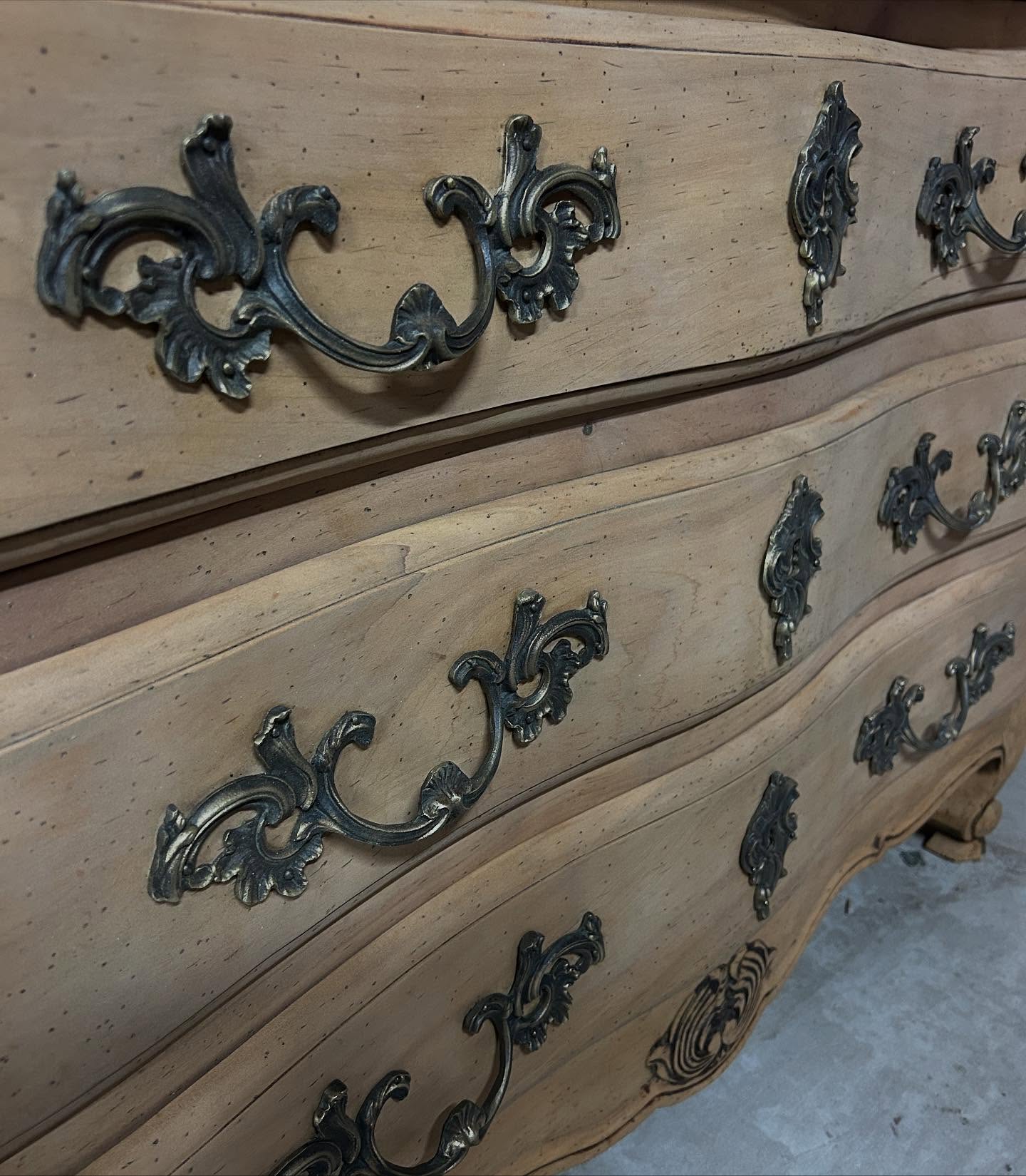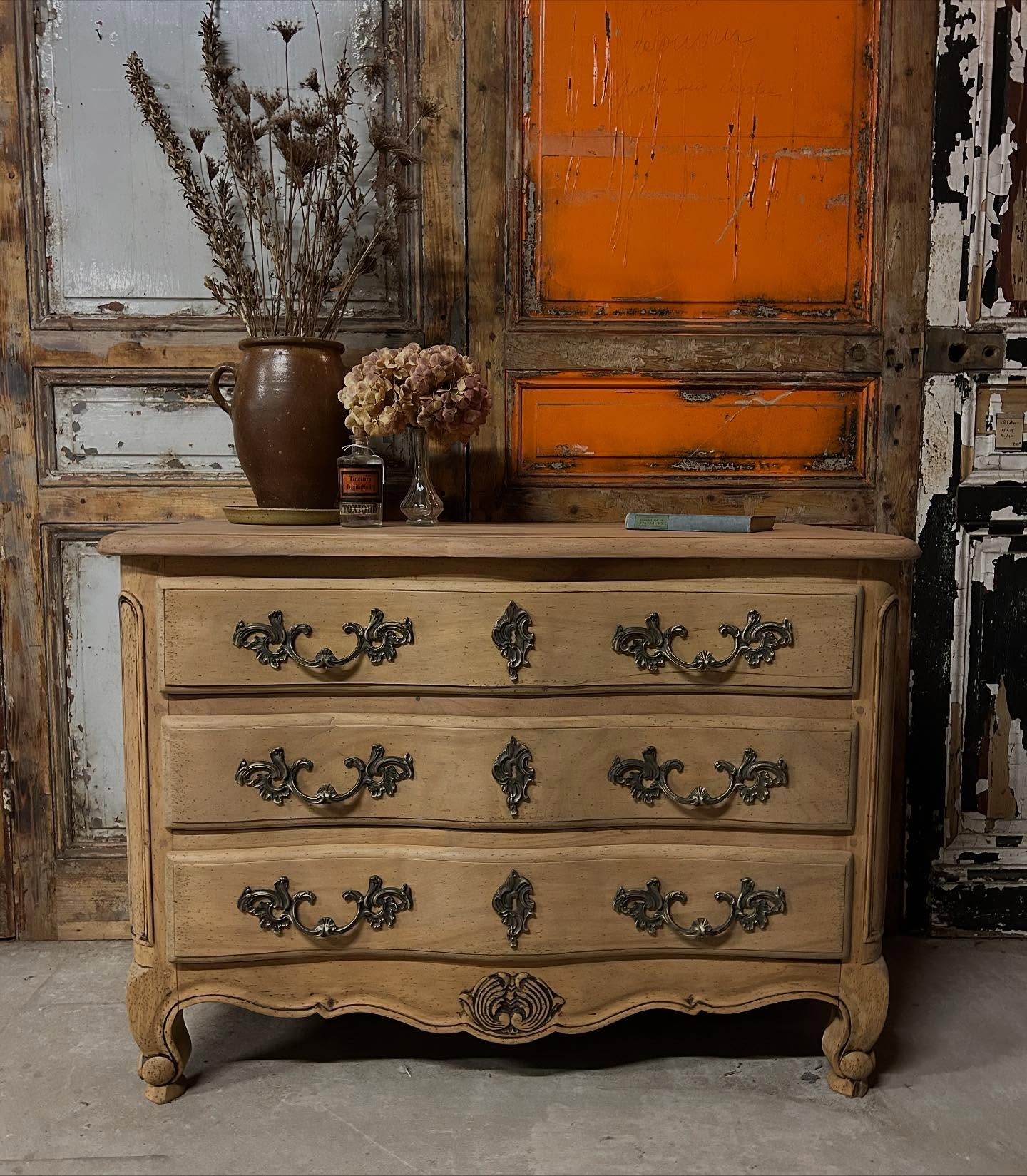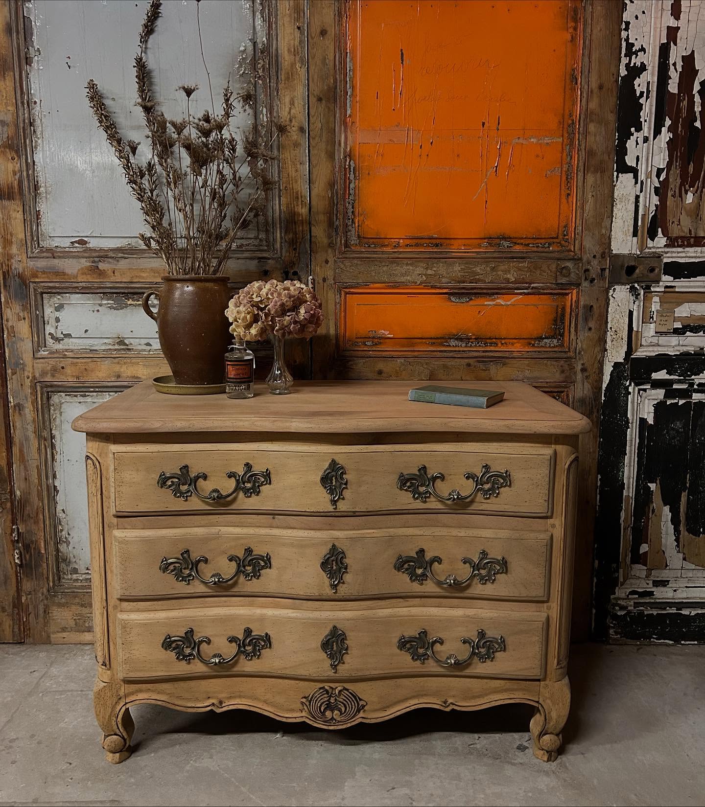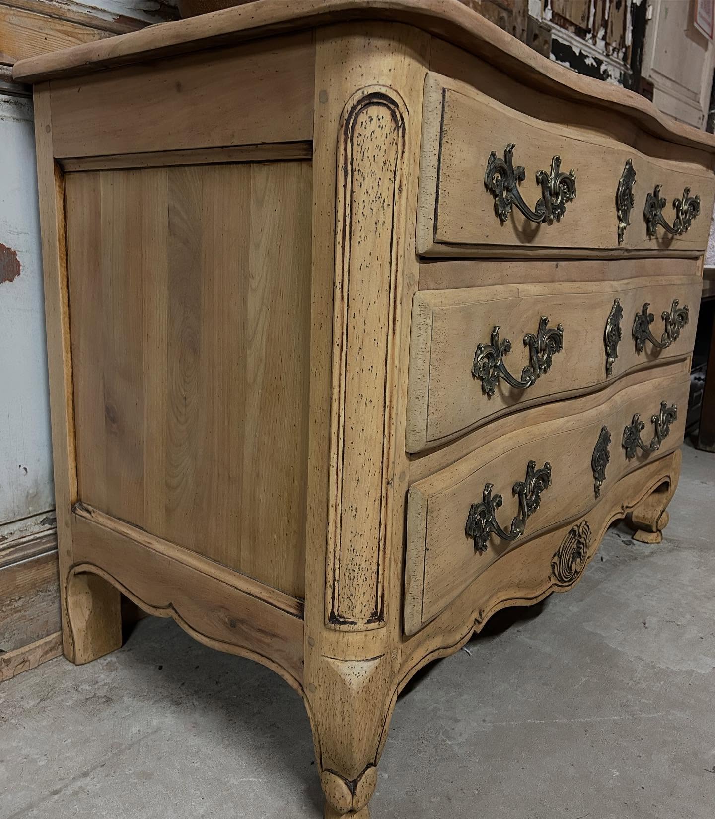 Très belle commode style Louis XV en hêtre massif du milieu du siècle dernier.